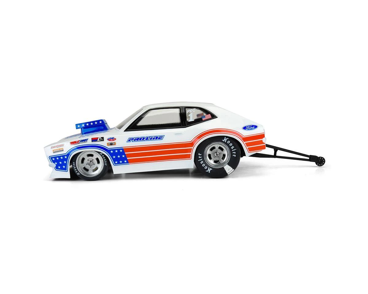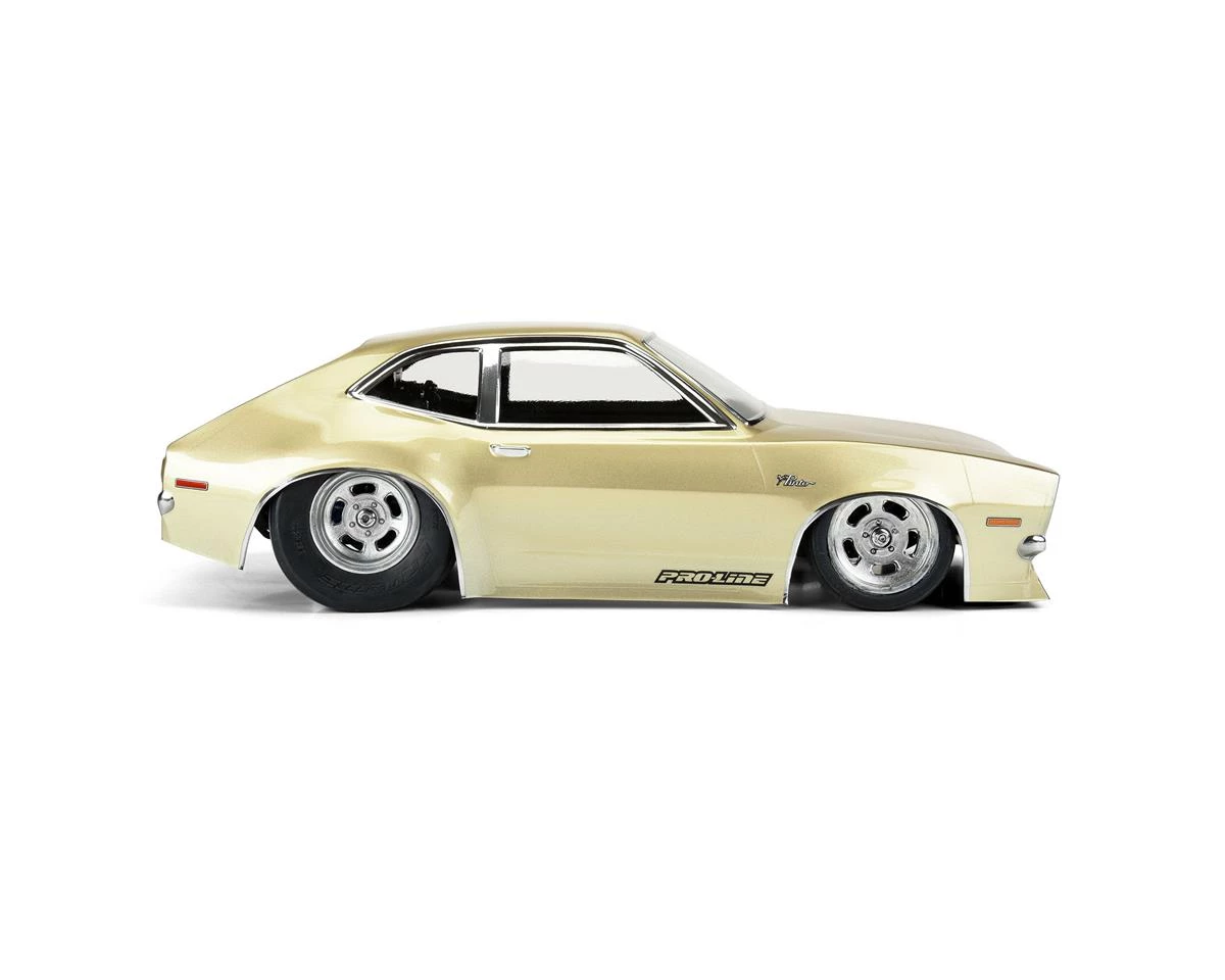 The Pro-Line 1972 Ford Pinto Short Course No Prep Drag Racing Body, is a subcompact bodyshell that is a great option for 11.25 wheelbase buggies. This “Pro Stock” style drag body was designed for chassis such as the Traxxas Bandit, Team Associated SR10 and many other 2WD buggies. Pro-Line has accurately recreated this iconic legend with hexagonal headlight bezels and detailed inset front end. This body comes clear allowing you to give this body a one of a kind paint job. Take to the streets and prepare to blow the doors off the competition!
