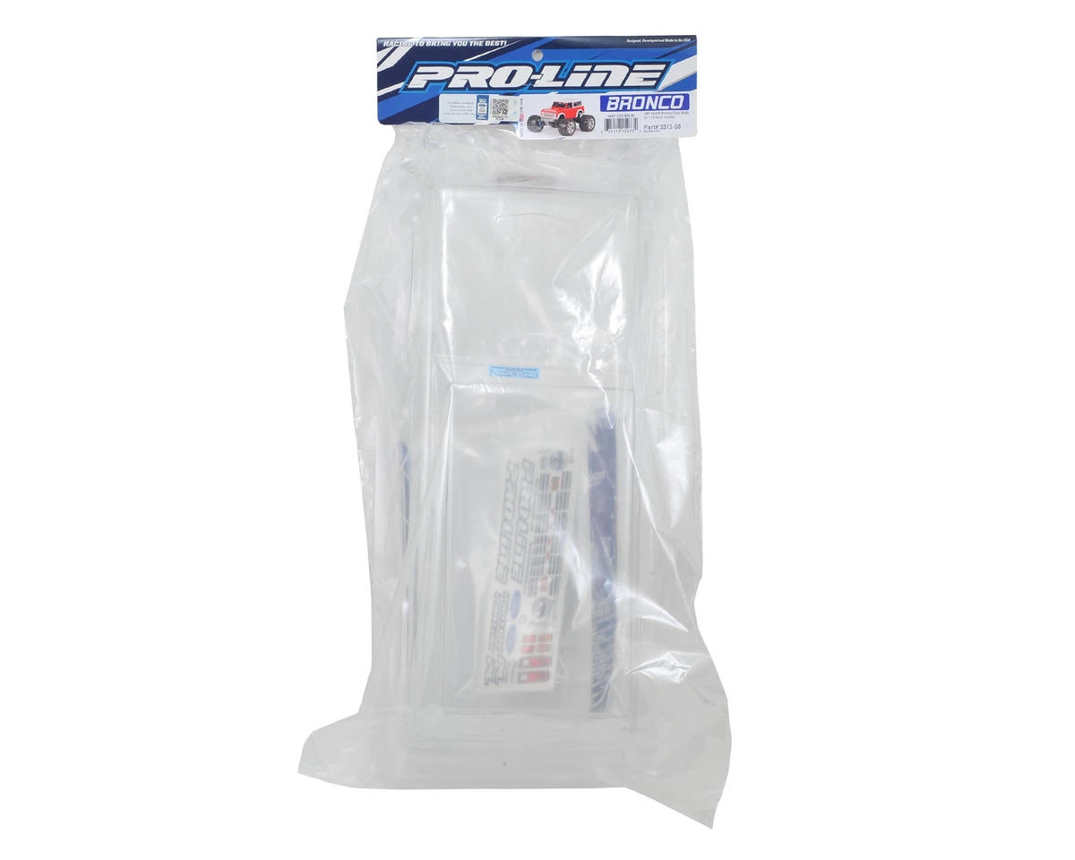 This is the Pro-line 1973 Ford Bronco Body, and is intended for use with 1/10 scale rock crawlers and monster trucks. Pro-Line’s classic car enthusiasts captured the overall essence of the Bronco and have made it available in a 1/10 scale format for 1/10 Rock Crawlers, as well as T/E/2.5-MAXX®, REVO® and Savage owners. Complete with detailed grill, headlights, body molding trim, and that distinct Bronco look, classic truck enthusiasts will not want to be left behind. When you’re looking to go back in time in automotive history, then check out Pro-Line’s new 1973 Ford Bronco body.
