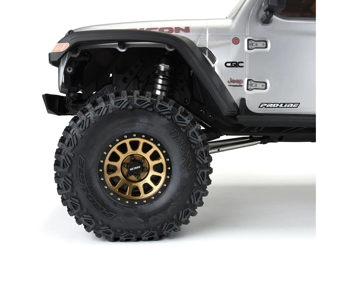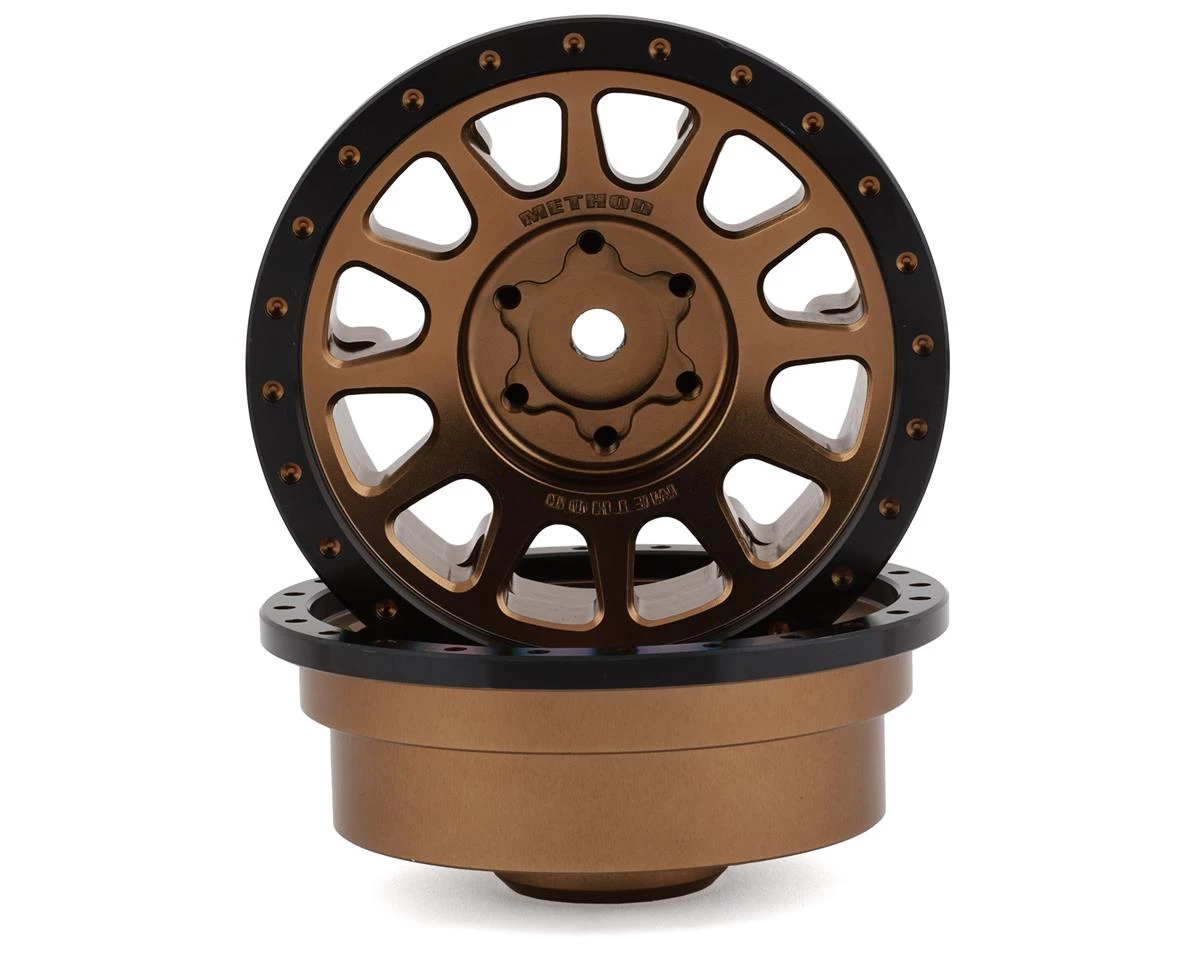 The Proline Axial SCX6 Method 305 NV Aluminum 2.9″ Wheel Faces bring this popular officially licensed Method wheel to the SC6 platform. Utilizing the stock SCX6 plastic bead-lock parts and hardware these wheel faces are an easy bolt on upgrade. Constructed from durable CNC machined aluminum these wheel faces feature a two tone bronze and black finish with a black aluminum wheel nut cap to finish it off. All the details from the 1:1 Method wheel are recreated in 1/6 scale, including the anodized finish, debossed Method logos, and black center wheel-nut cap. The Method 305 NV wheel faces feature a 17mm Hex Pocket and match the stock SCX6 wheel offset. Pair with the Pro-Line Hyrax XL 2.9″ tire (PRO10186-14) to maximize your large-scale crawling experience!