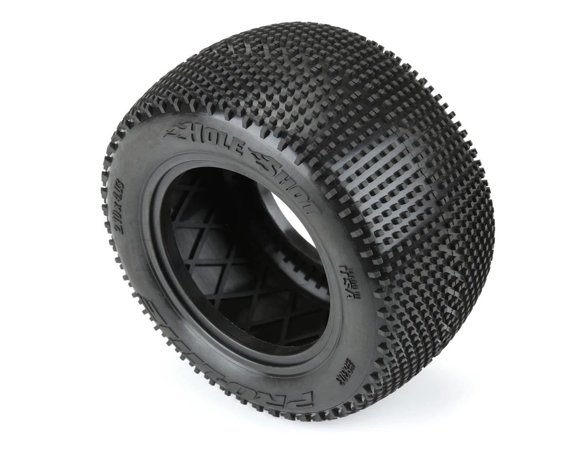 Pro-Line Hole Shot T 2.2″ Truck Tires feature the latest generation race tire carcass for maximum performance on your Stadium Truck. The legendary mini-pin Hole Shot design provides the optimum level of traction in dusty, hard-packed, and grooved conditions. As always, the Hole Shot T includes open-cell foam and is proudly made in the USA.