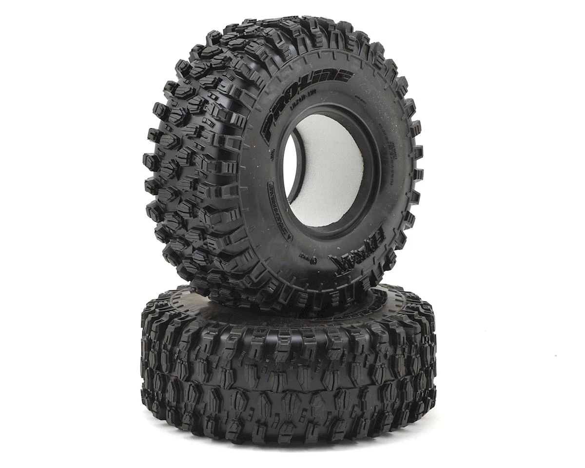 The Pro-Line Hyrax 1.9″ Rock Crawler Tire was designed from the ground up for maximum grip on the toughest terrain. The Hyrax features an aggressive and open tread pattern with each tread block containing multiple sipes for incredible tread flex. The highly detailed connected tread on the sidewall of the Hyrax extends out for unmatched side-hilling performance. The Hyrax also features stepped tread blocks that create even more forward gripping edges that dig into slick rock like no other scale tire Pro-Line has produced to date.