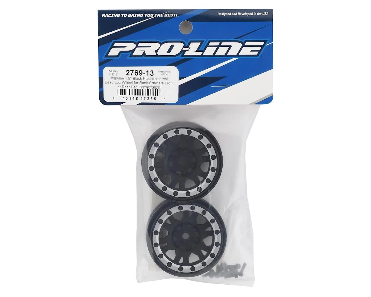 Pro-Line Impulse 1.9″ Bead-Loc Wheels feature silver painted faux rings and are Made in the USA! These Impulse wheels are designed to not only look scale but to be super easy to use by only requiring 6 screws per wheel for mounting tires. The unique 3-piece plastic wheel design bolts together in the back and locks on to Pro-Line’s incredible list of 1.9″ Crawling Tires. The back of this 12mm hex Rock Crawling 1.9″ wheel also allows the use of Pro-Line’s Brass Brake Rotor Weights (PRO6292-01 – not included) for additional looks and performance.