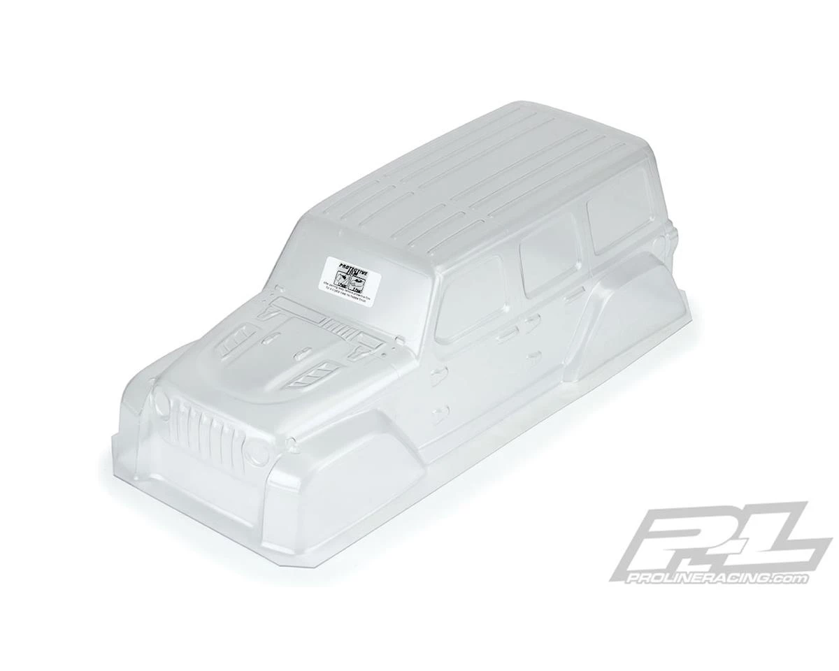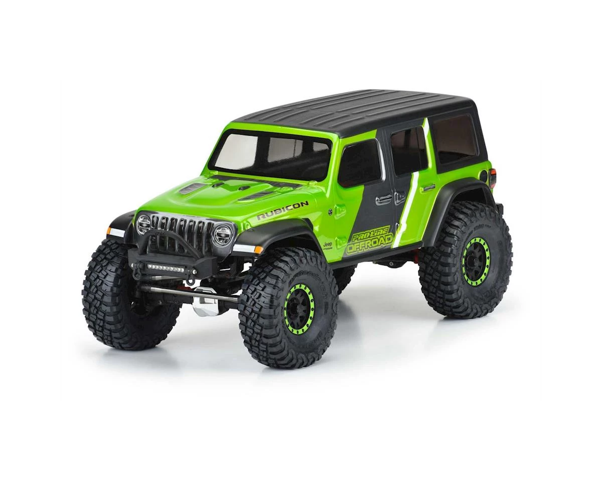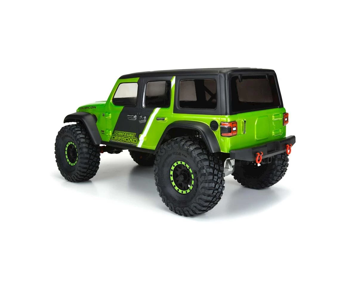 The Pro-Line Jeep Wrangler JL Unlimited Rubicon 12.3″ Crawler Body is ready for adventure! Rugged, tough and soon to be classic styling are now available from Pro-Line for 1:10 Scale Builders and Rock Crawler owners. It’s fully licensed Jeep styling is a perfect match to the full-size counterpart and is destined to become an automotive classic. The JL features an updated rear tail-light and tail-gate design, bigger windows for better visibility, higher clearance fenders to allow for bigger tires and hood details that all come together to give you a better rock crawling experience.