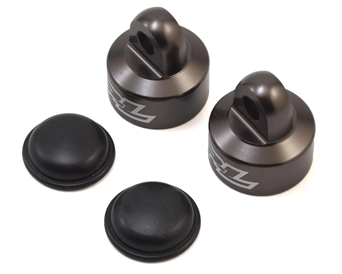 Pro-Line PRO-MT 4×4 Aluminum Shock Caps add strength, durability and style to a very important part of your truck. The Shock Caps are CNC machined Aluminum and Gunmetal Anodized to perfectly match the rest of your truck and have large laser engraved P-L logos on the front and back of the Caps. The Shock Caps come in a pack of 2 with included inner diaphragms and they are a direct stock replacement upgrade for your PRO-MT 4×4.