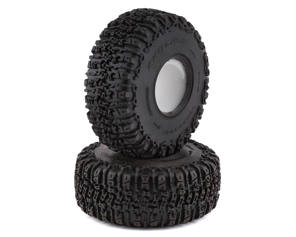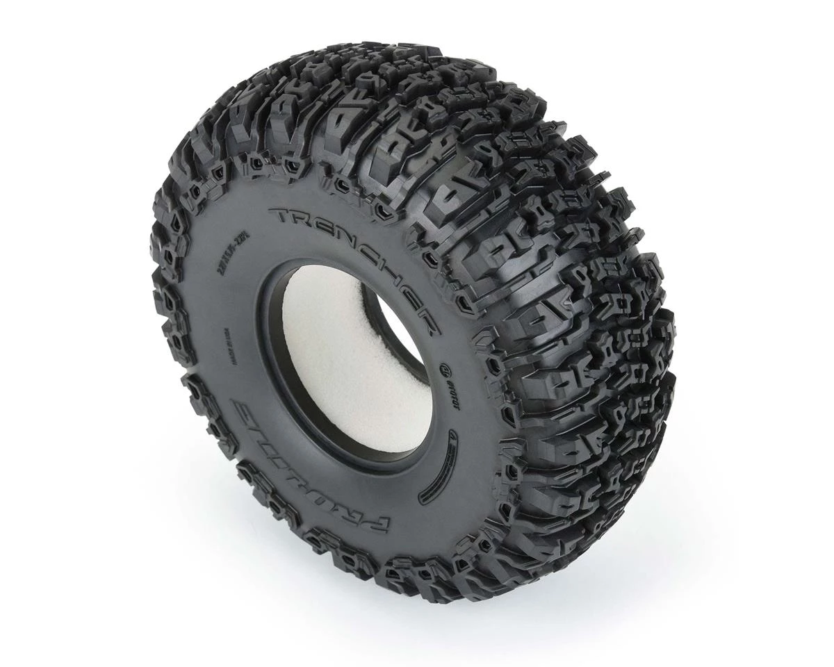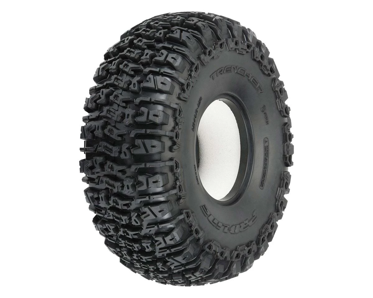 Pro-Line Trencher 2.2″ Rock Crawler Tires have been developed to provide the Pro-Line Hyrax some real competition. Featuring an aggressive tread pattern with each tread block containing multiple sipes for incredible tread flex while still providing scale looks. A connected tread extends out of the sidewall for great side-will performance. Package includes two tires with foam inserts.