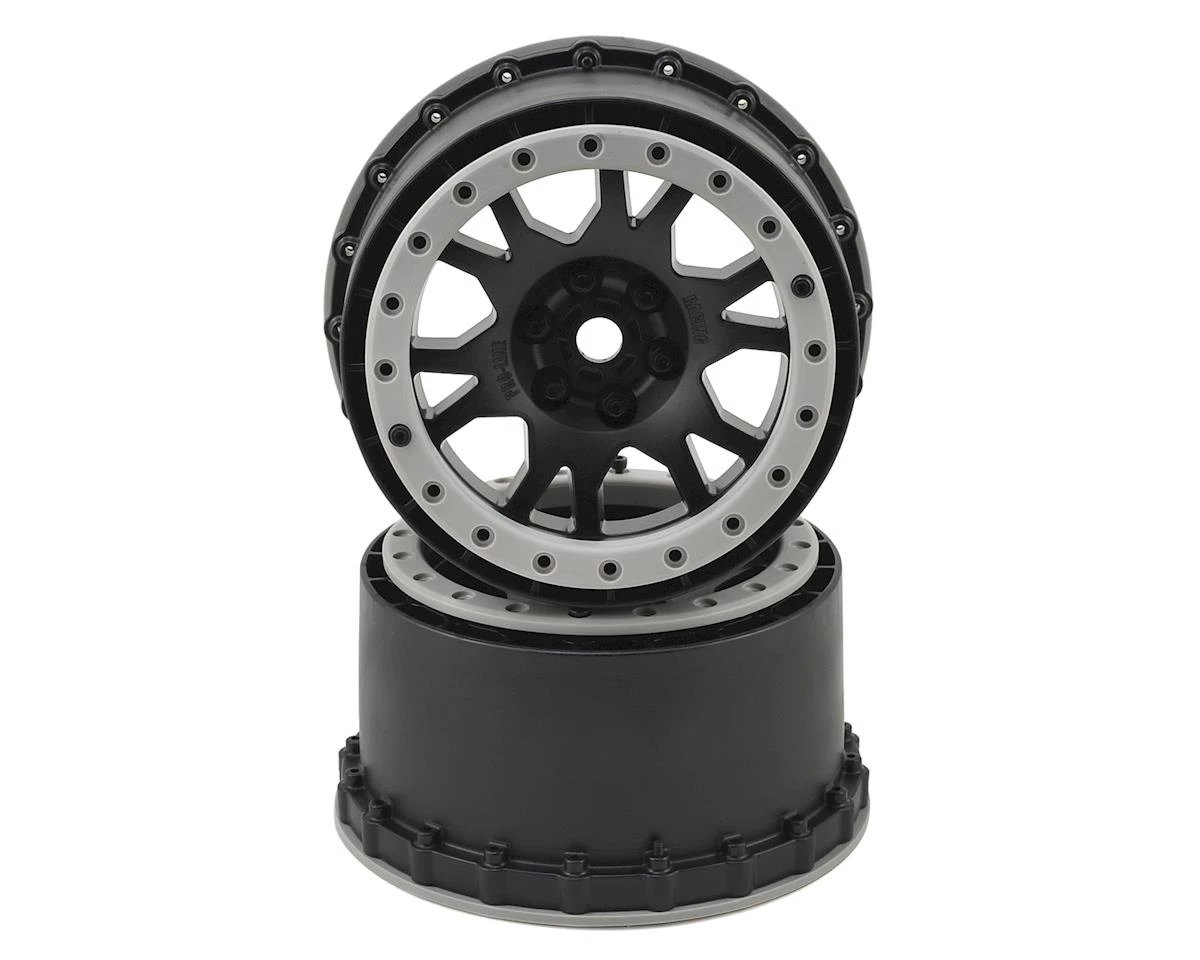 The Impulse design is inspired by full-size off-road wheels with a Tough, Blacked-out look and is manufactured at Pro-Line Headquarters in the USA out of extra thick, extremely durable material designed to take some serious abuse. The look of the Impulse Pro-Loc Wheel is finished off with the Stone Gray Bead-Loc Ring that will get your truck noticed wherever you go!