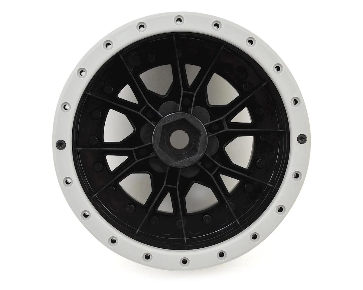 Pro-Line X-MAXX Impulse Pro-Loc Black Wheels feature a ground breaking Bead-Loc design that allows users to change tires or foams when necessary without worrying about the tires coming out of the bead. Pro-Line’s proprietary Pro-Loc Technology brings this feature to life and creates an ultra-secure bond between Pro-Line’s Pro-Loc Tires and Pro-Line’s Impulse Pro-Loc Wheels. The reinforced Tire bead of Pro-Line’s Pro-Loc Tires fits into a uniquely shaped channel on the wheel and the bead-loc screws actually pass through the tire rubber before being pinched by the outer bead-loc ring to create the maximum possible mounting security.